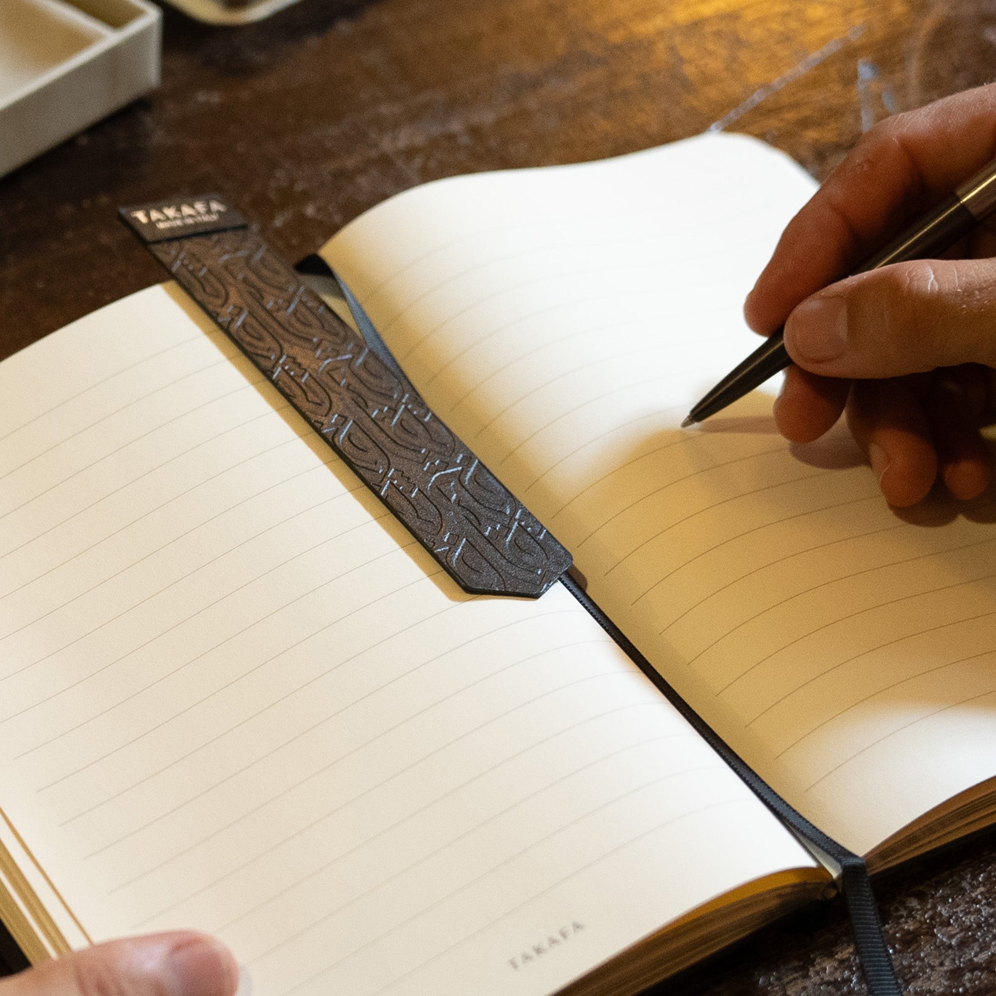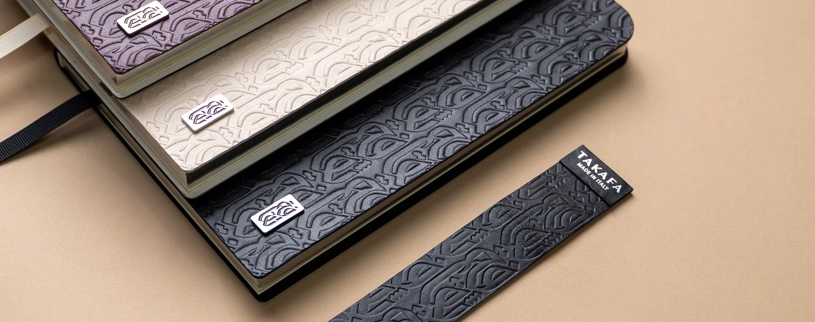 علامة Takafa Original مصنوعة من نفس جلد Bos Taurus المستخدم في دفاترنا الخالدة، بملمس ناعم وتشطيب مصبوغ يعكس نفس مستوى الأناقة الراقية. صُمِّمت بدرجات الألوان المطابقة، وتنزلق بسلاسة بين صفحات الورق الإيطالي بلون العاج، لتضمن ألّا تفقد أبدًا مكانك بين الكلمات الأهم.